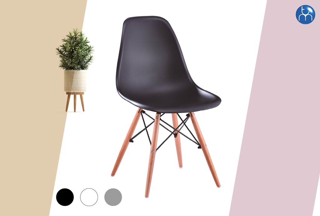 CHAISE EN POLYPROPYLENE AVEC PIEDS EN HETRE ET METAL NOIR Dimensions: L53*P45,5*H80*HP45cm